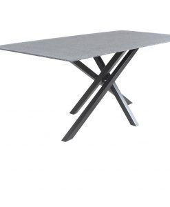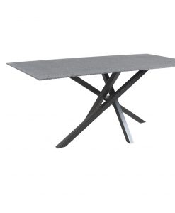 Snyggt designat matbord, Bordsskiva av Spraytonat glas med korslagda metallben.