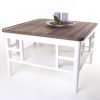 Elegant soffbord med en iögonfallande design på de vitlackerade benen och rustika bordsskivan i massiv oljad ek. Färger som bryter av varandra på ett naturligt och roingivande sätt. Bordet är massivt, stabilt och erbjuder rikligt med plats