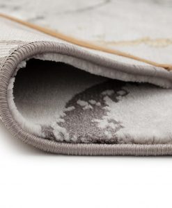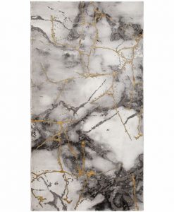 Mattans mönster för tankarna till marmor då den skiftar i olika grå toner, samt att den har mörkare partier som ger mattan ett djup.