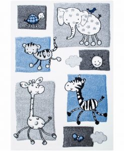Animal Kids har en vit bottenfärg och grå langettering på långsidorna. Mattan har lugna toner i grått och blått och pryds bl.a. av en giraff, sköldpadda och en elefant. Animal Kids är gjord i carvingteknik, vilket innebär att den har utskärningar för att detaljer skall bli mer framträdande.