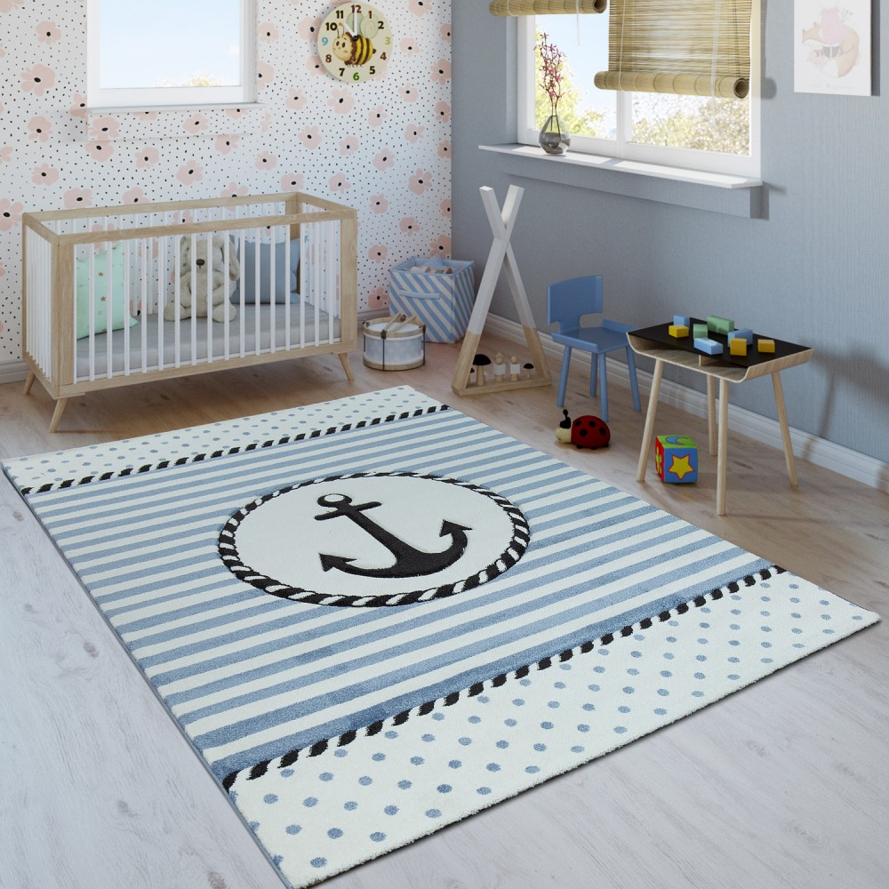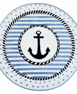 Ankare har en vit bottenfärg och blå langettering. Mattan har små prickar och ränder i blått, som pryds av ett svart ankare. Indigo Ankare är gjord i carvingteknik, vilket innebär att mattan har utskärningar för att göra detaljer mer framträdande.