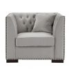 Ashley är en soffa av högsta kvalitet från varumärket J&P Design. En trendig soffa i vackert sammets tyg med dekorativa nitar och knappar längs rygg- och armstöd. Den Chesterfields inspirerade soffan passar perfekt som vacker detalj i vardagsrummet. Kombinera gärna 3,5-sits & fåtölj från samma serie.