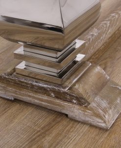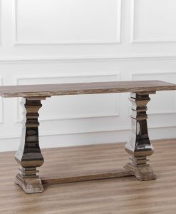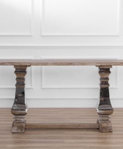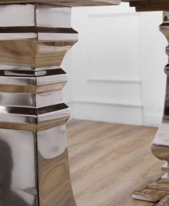 Rejält konsolbord som är tillverkat av antikt återvunnet trä på benställning av silver polerade ben, trä i ben och mellandel. Trä är ett naturmaterial, därför är inte två bord exakt lika i skiva och struktur.