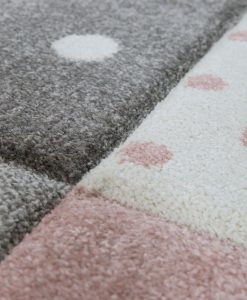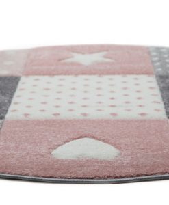 Atlas Star är en maskinvävd matta som kommer i vita, grå och rosa toner. Mattan har en grå langettering på långsidorna och pryds av ett rutmönster med stjärnor och hjärtan. Atlas Star är gjord i carvingteknik, vilket innebär att mattan har utskärningar för att göra detaljer mer framträdande.