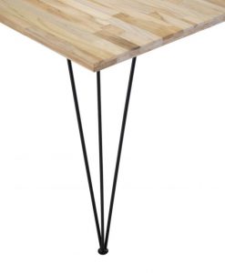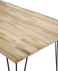 Bali matbord – bordsskiva av ihop limmade massiva stavar av olika trä sorter med svarta metallben.