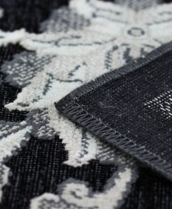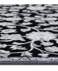 Black Flower har en svart bottenfärg och pryds utav vita och ljusgrå blommor. Mattan har en mörkgrå langettering och eftersom Black Flower är vävd i viskos så har den en fin lyster, samt att färgerna skiftar beroende på hur ljuset faller.