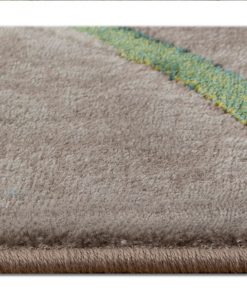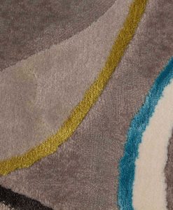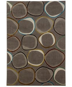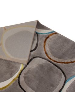 Boxholm Multi har en kort skuren lugg och är maskinvävd i polypropylen. Mattan har en grå-beige bottenfärg med matchande langettering. Mattan pryds av ojämna cirklar i färgerna senapsgult, turkost, rostrött och vitt.