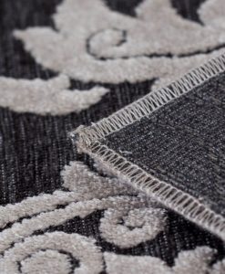 Cairo Medallion har en melerad bottenfärg i antracit och pryds utav dekorativa medaljonger i sandgrå toner. Mattan har en sandgrå langettering och eftersom Cairo är vävd i viskos så har den en fin lyster, samt att färgerna beroende på hur ljuset faller.