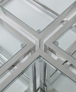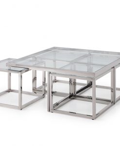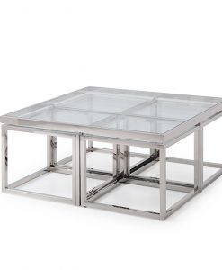 Carmen by J-P.Design är en exklusiv möbelkollektion som står ut från mängden. Ett otroligt elegant och snyggt soffbord i krom med toppskiva i glas. Soffbordet har fyra mindre under glasplattan.