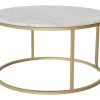Ett marmorbord med elegant minimalistisk design. Detta soffbord består av en vitt/grå marmorskiva på ett stadigt underrede av mässingspläterat stål, en kombination lika trendig som tidlös. Skillnader i nyans, ådring och glans kan därför förekomma, något som ju är en del av charmen hos natursten. Bordets nätta och luftiga design gör att det passar även i mindre rum, där kraftigare bord lätt blir för dominerande.