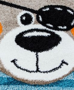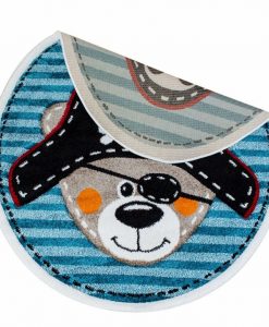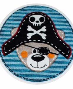 Caruba pirat är en frisématta som har blå-randig botten med vit langettering. Mattan pryds av en pirat-teddy som har lapp för ögat och pirathatt. Mattan är gjord i carvingteknik, vilket innebär att den har utskärningar för att färger och detaljer skall bli mer framträdande och ge större effekt.