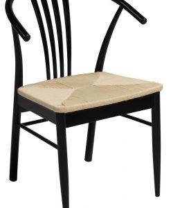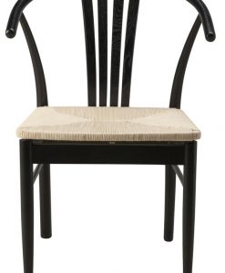 Stilig stol i modern design. En stol som sticker ut från mängden och sätter prägel på ditt möblemang. Svartlackad med flätad sits! Runda ben för en nätt design som passar med stolens sits.