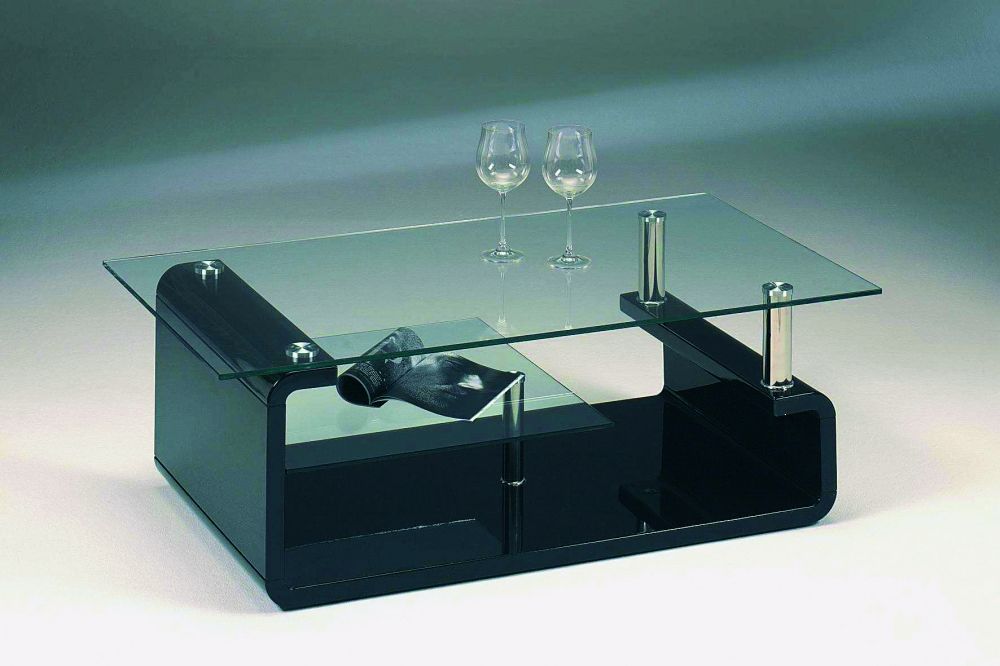 Castox är ett modernt och stilrent rektangulärt soffbord i härdat glas med svart underrede och kromade detaljer