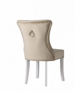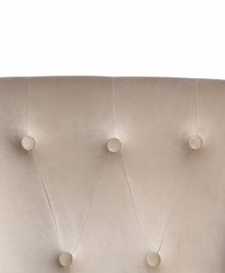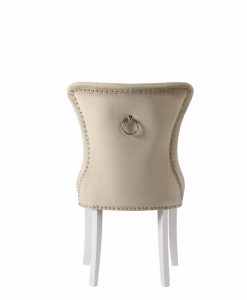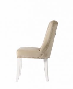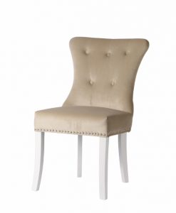 Fräsch matrums stol med rejäl sits. Klädd med ett beige sammetstyg. Sits med nozagbotten gör den otroligt skön att sitta i. Knapphäftad och pärlspikad. På ryggen sitter en ring som dekor.