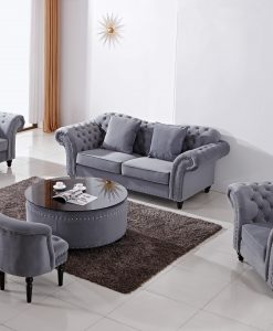 Dallas känns lika bekväm som den ser ut att vara. En soffa man mer än gärna vill sjunka ner i efter en lång dag! Soffan har en klassisk utformning med svängda armstöd och stomme i brun skinn. Rygg & sitsplymåerna i brun sammetstyg skapar en snygg kontrast och ger soffan ett exklusivt utseende. En tidlös soffa med hög standard som du kommer ha glädje av i många år framöver. Totalt ingår det fem ryggkuddar. Även på bilden ser du matchade soffbord & stolar.