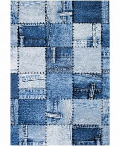 Denim Patch är en maskinvävd matta som har patchmönster i denim. Mattan har en denimblå langettering på långsidorna och kortsidorna är förstärkta med lim, vilket gör mattan extra tålig.
