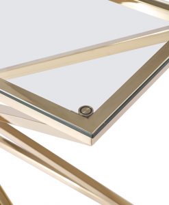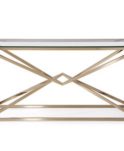 Diamond by J-P.Design är en exklusiv möbelkollektion som står ut från mängden. Diamond är ett trendigt konsolbord med en bordsskiva av glas som ligger på en guld färgad diamant form. konsolbordets blanka ytor ger ifrån sig en känsla av lyx.
