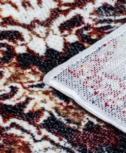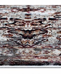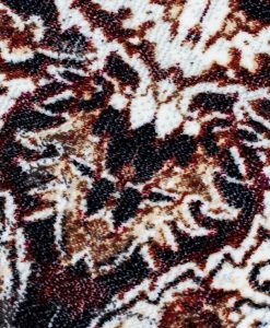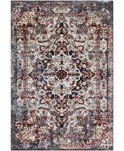 Dilara Medallion har en vit bottenfärg med matchande langettering. Mattan har ett melerat medaljongmönster i blå, grå och marsalaröda toner. Dilara Medallion har en kort skuren lugg och är maskinvävd i 100% polyester. Detta gör mattan tacksam att hålla ren, eftersom smuts och fläckar inte tränger in så lätt i de korta fibrerna.