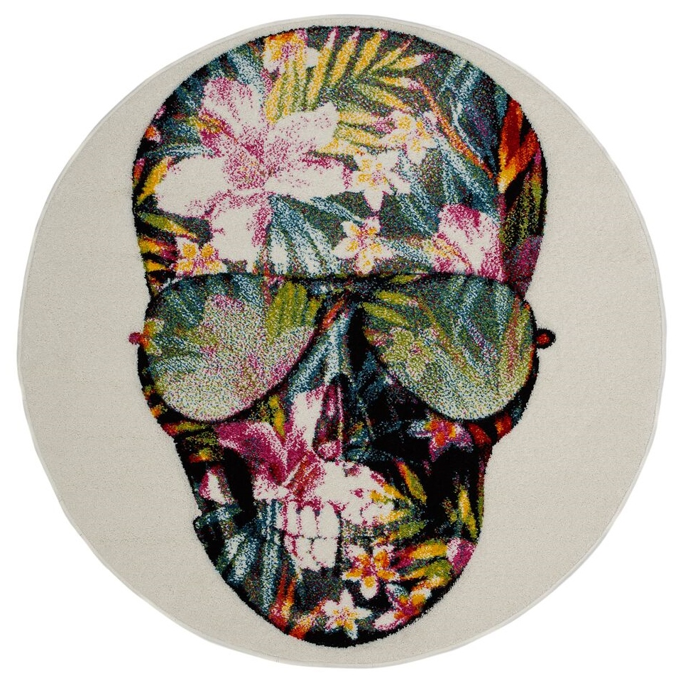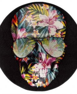 Dödskalle har en kort skuren lugg i vitt och har matchande langettering runtom hela mattan. Mattan pryds utav en cool och dekorativ döskalle, som består av blommor och blad i färgglada toner. Dödskalle är maskinvävd i polypropylen, vilket är ett syntetmaterial som är lätt att rengöra och hålla fri ifrån ludd och damm.