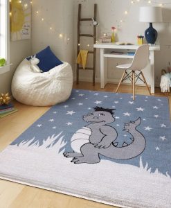 Drake barnmatta är en maskinvävd matta som har blå bottenfärg och matchande langettering. Mattan pryds av en söt liten drake med vassa tänder. Mattan är vävd med effektgarn som reflekterar ljuset och ger en skimrande effekt, beroende på hur ljuset faller.