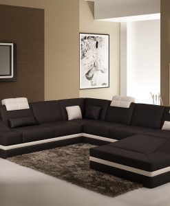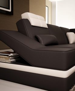 En rymlig U-soffa i skinn med lite högre ryggstöd med mycket bra komfort. Det ingår även 3st nackstöd.