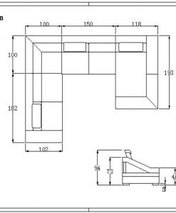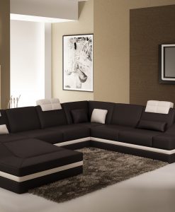 En rymlig U-soffa i skinn med lite högre ryggstöd med mycket bra komfort. Det ingår även 3st nackstöd.
