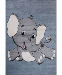 Dumbo blå barnmatta är en maskinvävd matta som har blå bottenfärg och matchande langettering. Mattan pryds av en grå elefant som hoppar och busar. Mattan är vävd med effektgarn som reflekterar ljuset och ger en skimrande effekt, beroende på hur ljuset faller.