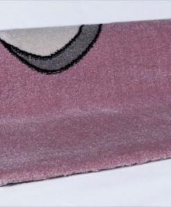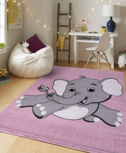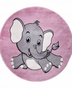 Dumbo Rosa barnmatta är en maskinvävd matta som har rosa bottenfärg och matchande langettering. Mattan pryds av en grå elefant som hoppar och busar. Mattan är vävd med effektgarn som reflekterar ljuset och ger en skimrande effekt, beroende på hur ljuset faller.