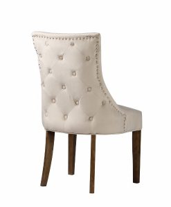 Otroligt skön matrums stol med knapphäftad rygg. Stolen är klädd med ett slitstarkt sammets tyg, väldigt elegant. Benen av trä och pärlspikad runt om. Sitsen med nozag botten gör att du sitter gärna länge i denna eleganta stol.