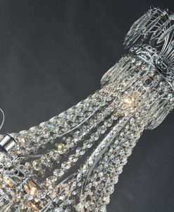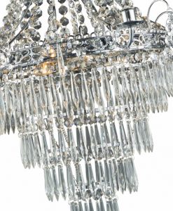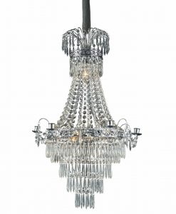 Empire kristallkrona med 6st ljusarmar har en stomme i kromlackad metall. En mycket prisvärd och populär kristallkrona med maskinslipade kristaller. Vanlig krokupphängning och kedjelängde kan enkelt anpassas. Empire passar bra t.ex. ovanför matbordet eller vardagsrumsbordet eller varför inte i uterummet?