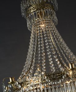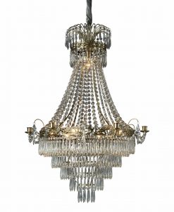 Empire kristallkrona med 8st ljusarmar har en stomme i antikfärgad metall. En mycket prisvärd och populär kristallkrona med maskinslipade kristaller. Vanlig krokupphängning och kedjelängde kan enkelt anpassas. Empire passar bra t.ex. ovanför matbordet eller vardagsrumsbordet eller varför inte i uterummet?