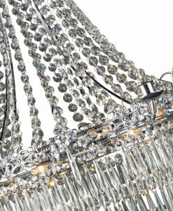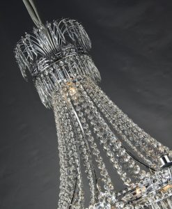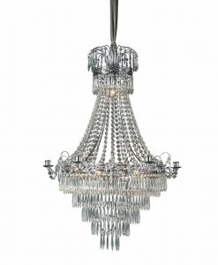 Empire kristallkrona med 8st ljusarmar har en stomme i kromlackad metall. En mycket prisvärd och populär kristallkrona med maskinslipade kristaller. Vanlig krokupphängning och kedjelängde kan enkelt anpassas. Empire passar bra t.ex. ovanför matbordet eller vardagsrumsbordet eller varför inte i uterummet?