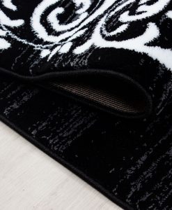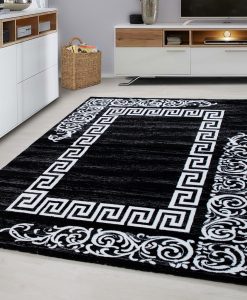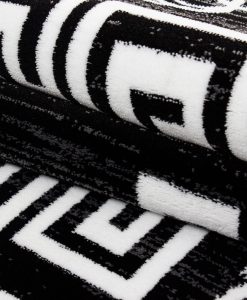 Florida Svart har en grå-svart bottenfärg med matchande langettering på långsidorna. Mattan har en vit meanderbård som består utav en fram- och tillbakaslingrande flätning. Florida Svart är maskinvävd i 100% Heatset Frisé och har en kort skuren lugg, vilket förhindrar att smuts och fläckar tränger in i mattan.