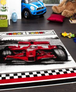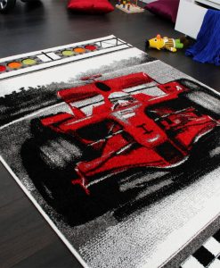 En maskinvävd matta i en mjuk och härlig kvalitet, med ett mönster av en formel 1 bil. Barnmatta vävd i syntetmaterial, vilket gör den enkel att dammsuga och hålla ren.
