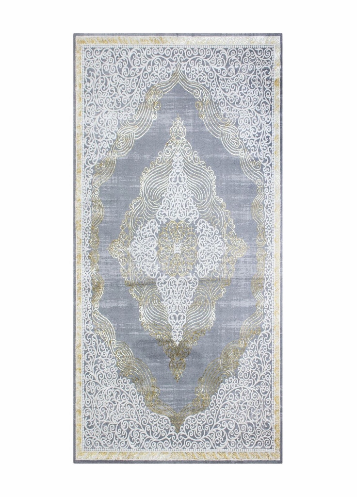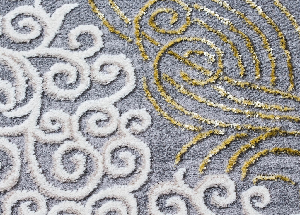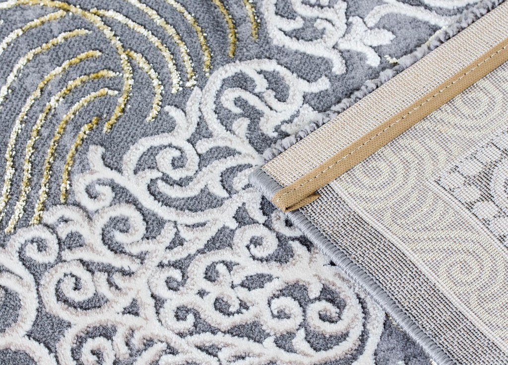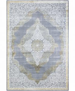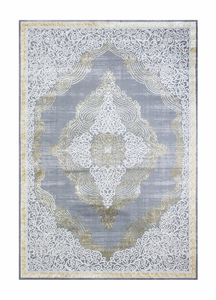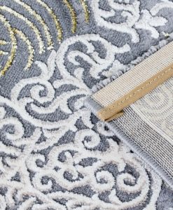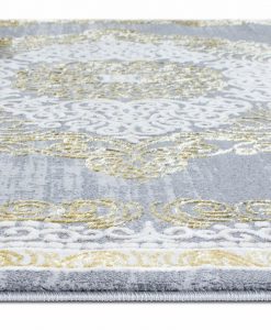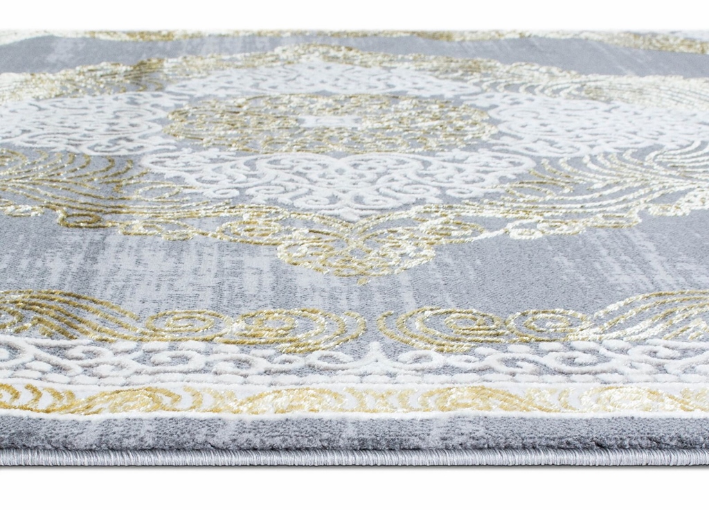 Freya Medallion har en grå bottenfärg med matchande langettering. Mattan har ett vit-guldigt medaljongmönster som är gjort i high/low-effekt, vilket gör mönstret mer framträdande. Freya Medallion är vävd med polyestertrådar, vilket ger mattan en vacker lyster och beroende på hur ljuset faller så får mattan en skimrande effekt.