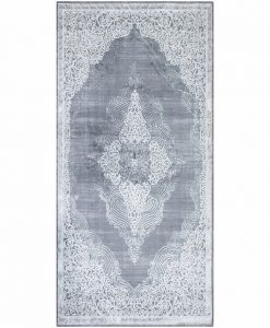 Freya Medallion har en grå bottenfärg med matchande langettering. Mattan har ett vit-silvrigt medaljongmönster som är gjort i high/low-effekt, vilket gör mönstret mer framträdande. Freya Medallion är vävd med polyestertrådar, vilket ger mattan en vacker lyster och beroende på hur ljuset faller så får mattan en skimrande effekt.