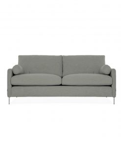 Två runda prydnadskuddar i matchande tyg medföljer och ger soffan ett extra stilfullt utseende och de 12cm höga metallbenen gör det lätt att städa under soffan.