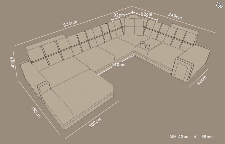En rymlig soffa med lite högre ryggstöd med mycket bra komfort. Det ingår även 2st nackstöd samt en bordsbricka.