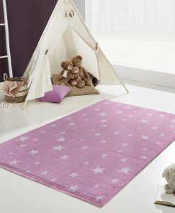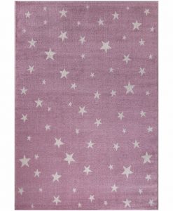Galaxy Rosa barnmatta är en maskinvävd matta som har rosa bottenfärg med matchande langettering. Mattan pryds av en vita stjärnor i olika storlekar. Mattan är vävd med effektgarn som reflekterar ljuset och därför har en vacker lyster som ger en skimrande effekt, beroende på hur ljuset faller.
