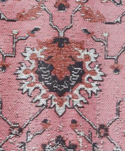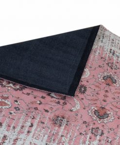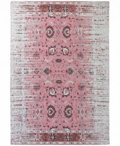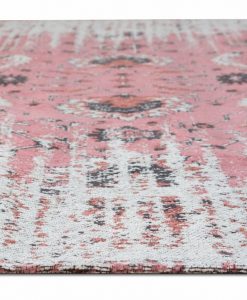 Ghazal Vintage är en maskinvävd matta som är slätvävd och tillverkad i mjuk bomullschenille. Mattan har en rosa botten med dekorativt mönster i ljusbeige och grå toner. Ghazal Vintage är tillverkad i vintage-look vilket innebär att mattan har ett slitet utseende på detaljer och färger.