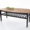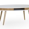 Här presenteras Glasgow soffbord med klassisk design, borsskiva i massiv oljad ek samt ben i vitlackerad ek.