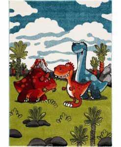 Härligt lekfull matta med dinosaurier! Den färgglada mattan blir en mysig och rolig plats för lek på golvet. Happy Dinosaurs passar i alla barnrum och mattans tjocka lugg dämpar ljud och skapar en ombonad känsla.