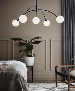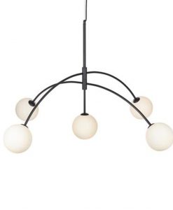Heaven Taklampa i svart metall och fem vita glasskärmar. Total diameter på lampa 117cm.