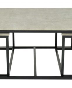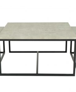 Hertog är ett modernt och stilrent soffbord från Nordic Furniture Group. Bordet har en snygg topp i melamin med en elegant betongimitation. Underede i svartlackad metall. Tack vare att toppen är tillverkad i melamin är bordet mycket lättskött. I detta set ingår 3st bord, ett större kvadratiskt med två mindre som du enkelt kan skjuta in under det stora.