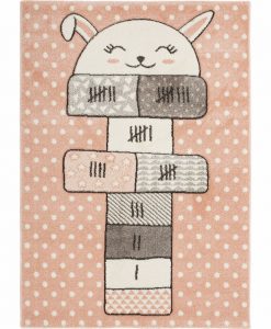Hoppa Hage barnmatta är en stilren barnmatta som kommer i mjuka pastelltoner. Mattan har en grå botten med vita små prickar och pryds utav en söt kanin vars nos, öron och kinder är puderrosa.