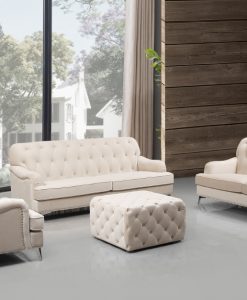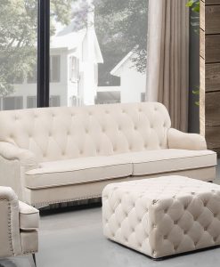 Nydesignad och läcker Howard-variant med knappar i ryggen och är dekorerad med nitar och har stilrena ben i rostfritt stål. En Howardsoffa är en tidlös klassiker som blivit en riktig favorit i många hem. De mjuka, rundade formerna tillsammans med de vackert svarvade benen med hjul ger en möbel som flörtar med klassisk engelsk stil och den populära New Englandstilen. I vårt howardsortiment finns både soffor i flera storlekar och matchande pallar.