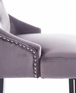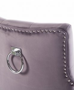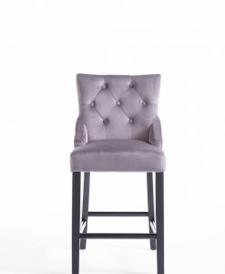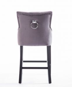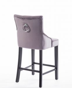 Denna barstol lämnar du inte i första taget! Klädd med slitstark sammet och med dekor nitad runtom. På ryggen sitter en stor silverring. Finns även matchande matstolar.