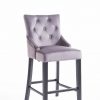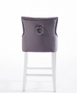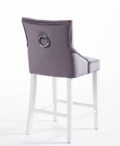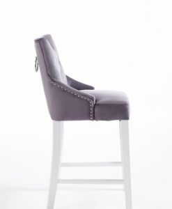 Denna barstol lämnar du inte i första taget! Klädd med slitstark sammet och med dekor nitad runtom. På ryggen sitter en stor silverring. Finns även matchande matstolar.