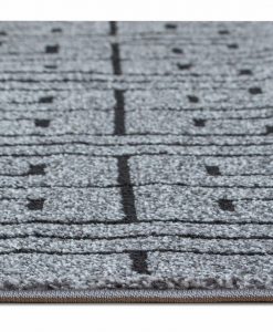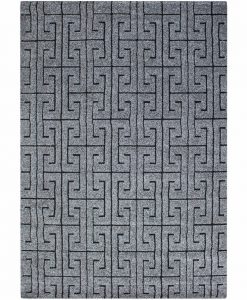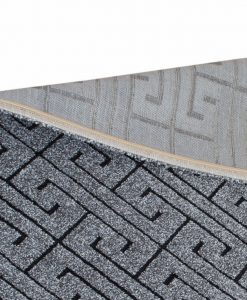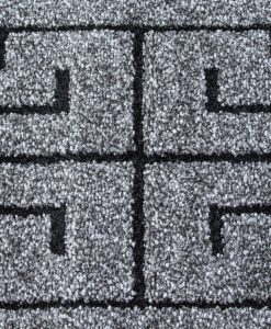 Kairo har en grå bottenfärg med matchande langettering på långsidorna. Mattan pryds av ett svart meander-mönster. Kairo är maskinvävd i polypropylen, vilket är ett syntetmaterial som är lätt att rengöra och hålla fri ifrån ludd och damm.