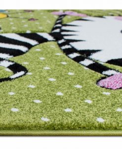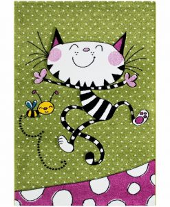 Katten är en färgglad barnmatta som har en grön botten med små vita prickar och pryds utav en glad katt och en söt liten humla. Katten har en grön langettering på långsidorna och är gjord i carvingteknik, vilket innebär att den har utskärningar för att detaljer skall bli mer framträdande.